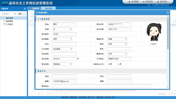 社(she)會工作者在線填寫(xie)登記信息(xi),提(ti)交后(hou)系統自動歸檔,由其所在的城(cheng)市管理單位進行信息(xi)審(shen)核管理。