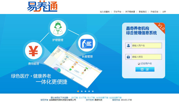 養(yang)(yang)老管(guan)(guan)(guan)理(li)(li)(li)(li)信息平(ping)臺(tai)是以養(yang)(yang)老機構(gou)(gou)的(de)實際業務(wu)為基(ji)礎,以契合(he)業務(wu)管(guan)(guan)(guan)理(li)(li)(li)(li)、提升服務(wu)質量為核心設計(ji)理(li)(li)(li)(li)念,專為養(yang)(yang)老機構(gou)(gou)量身打(da)造打(da)造的(de)一(yi)(yi)套(tao)管(guan)(guan)(guan)理(li)(li)(li)(li)信息平(ping)臺(tai)。平(ping)臺(tai)包含(han)BS系統(tong)和PAD端,BS系統(tong)有6大管(guan)(guan)(guan)理(li)(li)(li)(li)子系統(tong):基(ji)礎信息管(guan)(guan)(guan)理(li)(li)(li)(li)、登記(ji)管(guan)(guan)(guan)理(li)(li)(li)(li)、護理(li)(li)(li)(li)管(guan)(guan)(guan)理(li)(li)(li)(li)、工作管(guan)(guan)(guan)理(li)(li)(li)(li)、費(fei)用管(guan)(guan)(guan)理(li)(li)(li)(li)、統(tong)計(ji)分(fen)析。PAD端包含(han):個(ge)案(an)信息,護理(li)(li)(li)(li)管(guan)(guan)(guan)理(li)(li)(li)(li),統(tong)計(ji)分(fen)析。已經接入(ru)物聯網設備“一(yi)(yi)體機”,方便(bian)老人健康體檢(jian),并實時(shi)接入(ru)體檢(jian)信息。