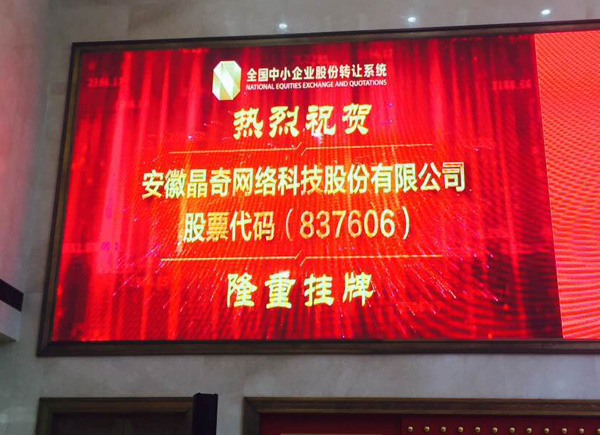 2016年7月18日,安徽晶奇網絡科技股份有限公司(簡稱:晶奇網絡,股票代碼:837606)在全國中小企業股份轉讓系統正式掛牌,成功登陸享有“中國納斯達克”之稱的資本市場,是晶奇人十年努力的結果,更是晶奇網絡綜合實力的見證!