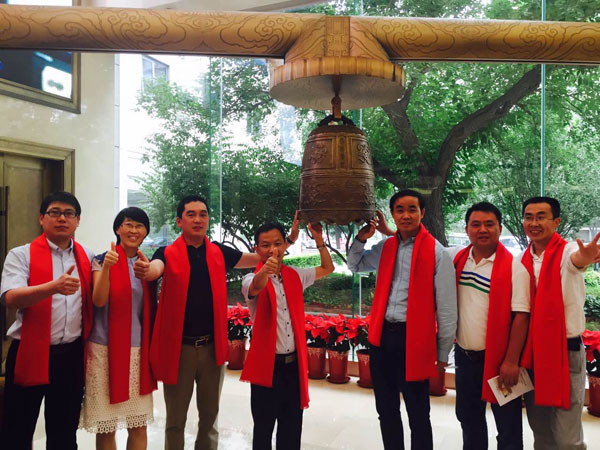 安徽晶奇網絡科技股份有限(xian)公(gong)司董(dong)事長冷浩,總裁(cai)盧棟(dong)梁,高(gao)級(ji)副總裁(cai)劉全華(hua),常務(wu)副總裁(cai)李友濤,副總裁(cai)、營(ying)銷中(zhong)心總經理(li)宋波,財務(wu)總監吳有青,研發中(zhong)心副總經理(li)張(zhang)結魁等出席(xi)掛牌儀(yi)式,并(bing)在儀(yi)式上(shang)敲響開市鐘聲,共同見證(zheng)了晶奇網絡這歷史性的一刻。