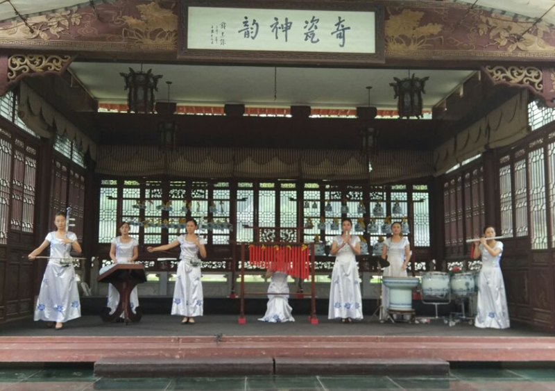 景德鎮的陶瓷素有“白如玉,明如鏡,薄如紙,聲如磬”之稱,最特別的當屬其中的“聲如磬”,接下來,我和我的小伙伴們有幸欣賞到了獨一無二的瓷樂表演,一群身著青花白裙的美麗姑娘,用瓷制成的樂器,奏出了曼妙動聽的旋律,更給神奇的古窯增添了一份浪漫氣息,讓人駐足不前,讓人沉醉其中。
