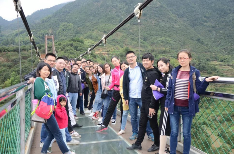 看過《歡樂頌2》的小伙伴們都知道婺源的壘心棧橋嘍!我和我的小伙伴們最后一站來到了驚險刺激的壘心棧橋,橋體中間嵌透明玻璃,橋上往下看景觀,戰戰兢兢,如履薄冰;我和我的小伙伴們行于百米之高的橋面,橋體跟隨腳步大幅度的搖擺,很是心驚膽顫。但我們是一個團隊,有小伙伴們的陪伴與支持,無畏驚險,繼續前行。