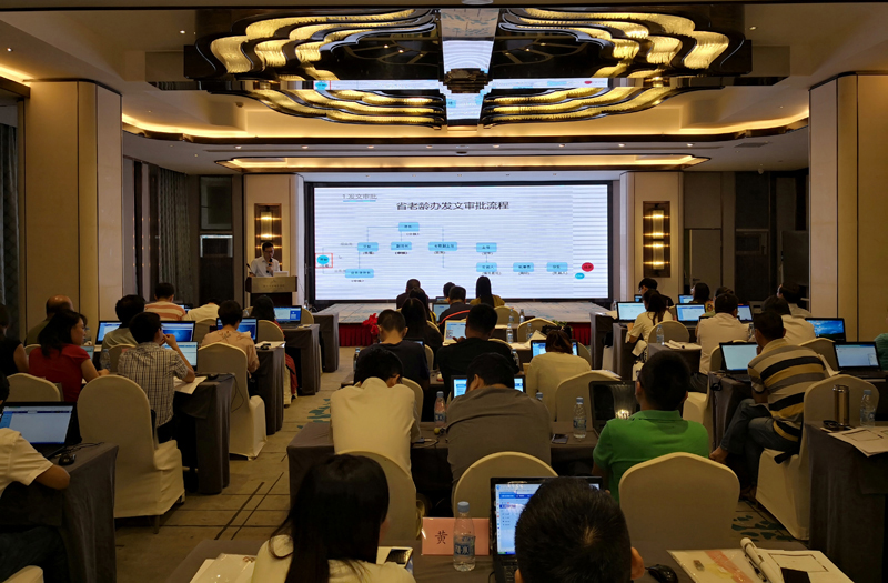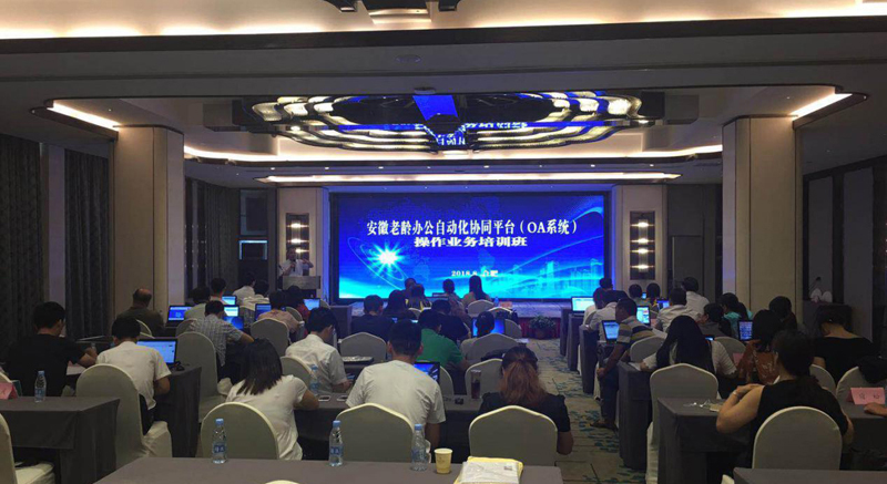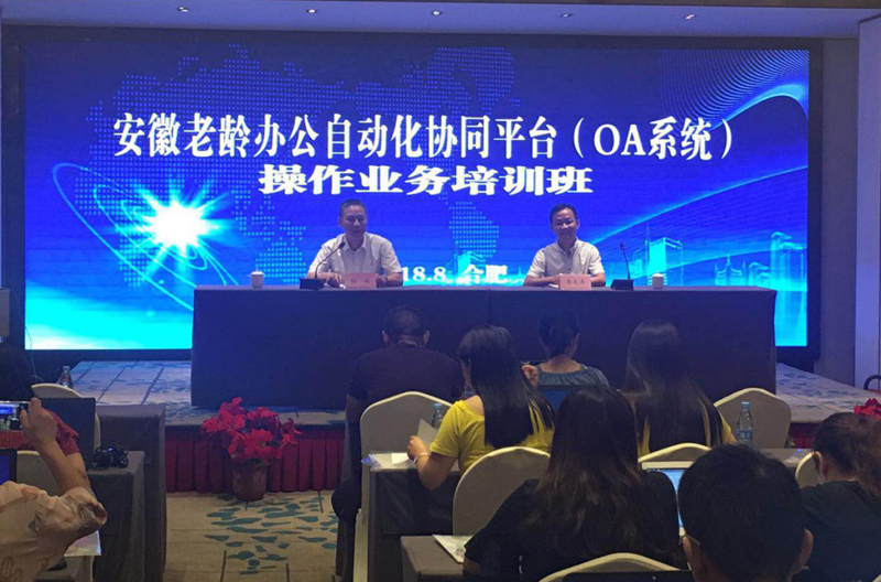 為確保老齡OA系(xi)統順利啟(qi)用,發揮網絡平臺(tai)優勢,近日,由我公(gong)司(si)主辦的(de)安徽省老(lao)齡辦公(gong)自(zi)動(dong)化協(xie)同平臺(tai)(簡稱:老(lao)齡OA系統(tong))操作培訓會在合肥市·黃山大廈酒店順利召開。安徽省民政廳老齡辦處長楊斌,我公司(si)董事、常務副(fu)總裁李友(you)濤出席會議(yi),全省18個地市(shi)縣(xian)區老齡機構的相關工作人員參(can)加了本次會議。