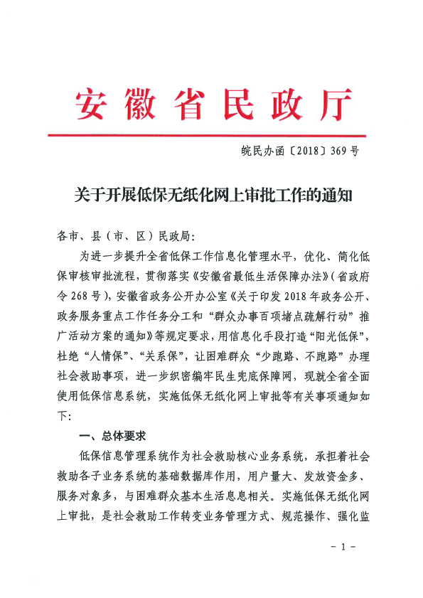 附:安徽省民政廳關于開展低保無紙化網上審批工作的通知