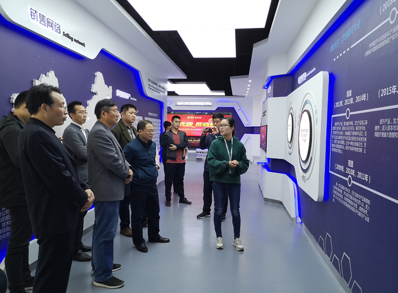 宋主任一行抵達公司(si)后來到一樓的晶奇智能展廳,講解員汪小星(xing)從公司(si)簡介到發展歷程、市(shi)場客戶及產品中心(xin)等方面向在場領導作(zuo)詳細的介紹。