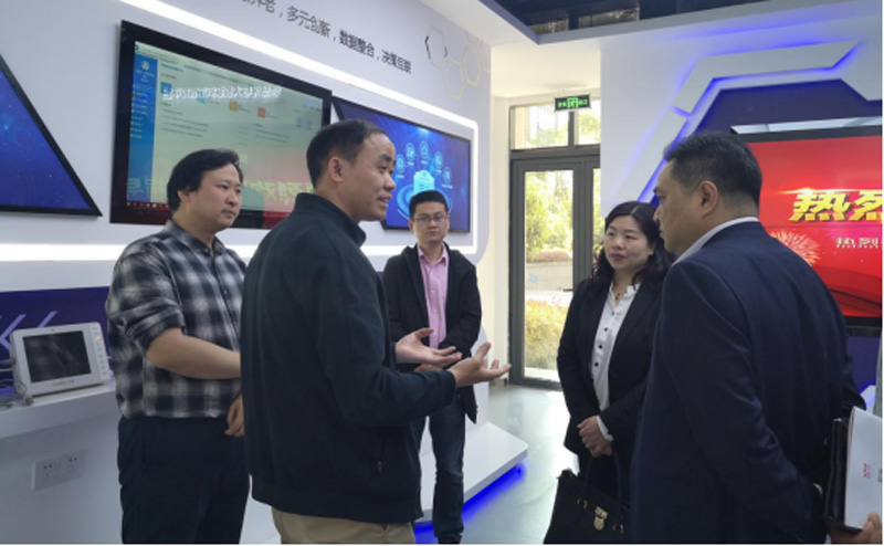 【王經理向李局長一行詳(xiang)細(xi)講解智慧健康(kang)養老管理系統(tong)】