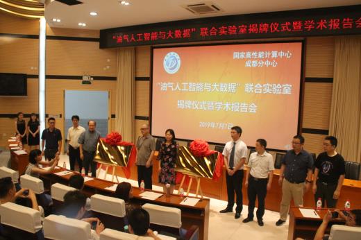 國家高性能計算中心(成都分中心)主任石勇、中心常務副主任何靜、西南石油大學人工智能研究院院長閔超和西南石油大學科研處副處長何蘇等共同為“油氣人工智能與大數據聯合實驗室”揭牌。揭牌儀式結束后,開展了學術交流活動。