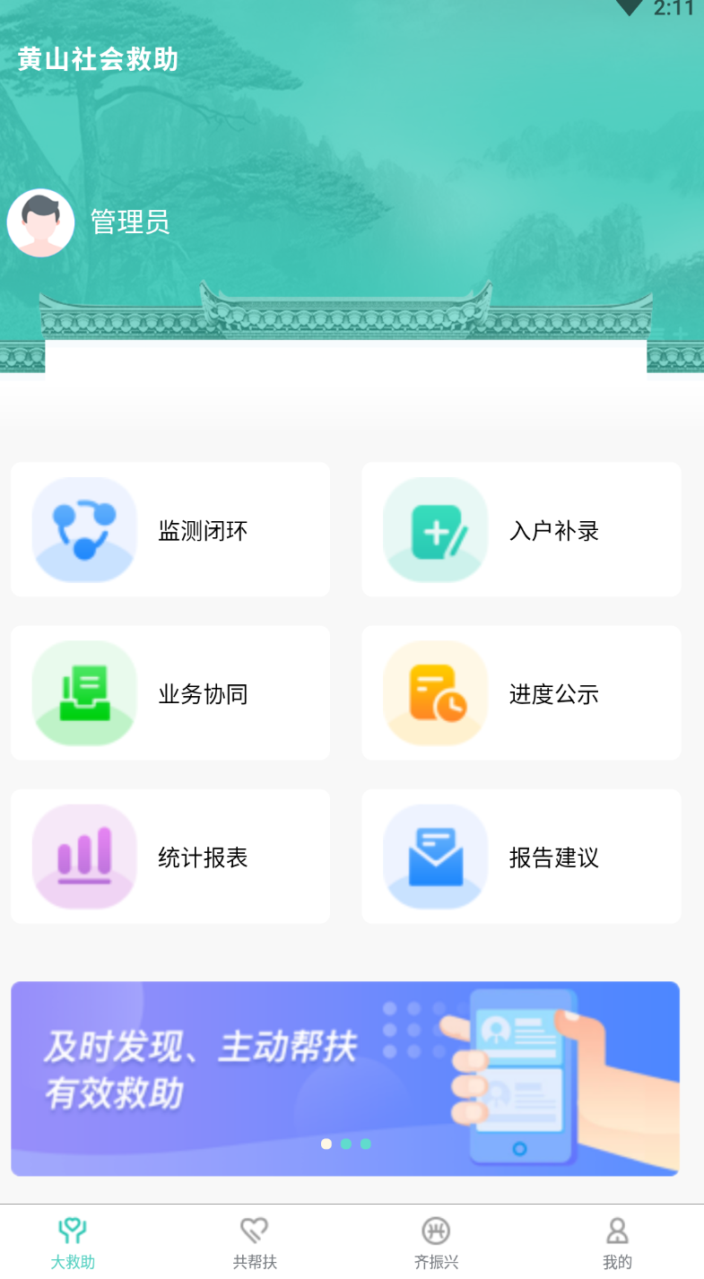 低收入人口動態監測預警系統正在黃山市休寧縣試點推行,目前已經取得階段性的成果,在微信小程序、PC端等(deng)方(fang)面頗具亮點。在建(jian)設思路(lu)上,胡(hu)局長(chang)現(xian)場指導我們產品規劃不僅(jin)要(yao)體現(xian)社會(hui)救助,還要(yao)體現(xian)共幫扶、齊振興等(deng)功能,數據(ju)傳輸(shu)層(ceng)面要(yao)橫向互(hu)聯、縱向貫通。信息化系統要(yao)做到“三(san)用”:基(ji)層(ceng)干部管(guan)用、基(ji)層(ceng)群眾愛用和(he)困(kun)難群眾受用。