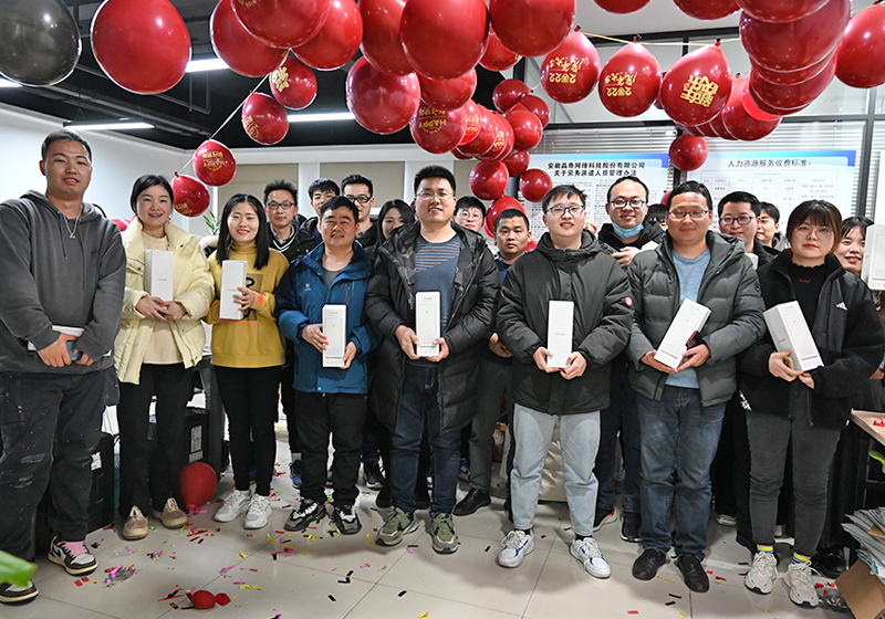 新的一年如期而至,轉眼我們(men)晶奇人已攜手(shou)走過了十(shi)六個年華(hua)。風雨(yu)兼程,我們(men)一起并肩走過,躊(chou)躇滿志,我們(men)即(ji)將踏上新的征(zheng)程。2022年新春年會的尾聲,晶奇網絡總(zong)裁李(li)(li)友濤代(dai)表公(gong)司向(xiang)全(quan)體(ti)員工獻上最真誠的感謝與祝(zhu)福!隨后,李(li)(li)總(zong)在(zai)公(gong)司群里派發新年紅包,全(quan)體(ti)員工好一個拼手機拼網速,同事們熱情(qing)高(gao)漲,收獲滿滿。