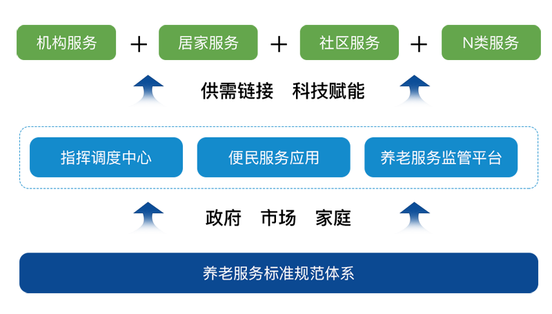 利用信息技術手段,整合政(zheng)府、企業、家庭等(deng)各(ge)類養老(lao)服(fu)務(wu)資源,合理調(diao)配養老(lao)供需均衡,推進(jin)各(ge)類養老(lao)服(fu)務(wu)機構運營監管(guan),橫向連接 “城市大(da)腦(nao)” 和各(ge)政府部門(men),縱向對接部、省、市各(ge)級(ji)養老平臺,打(da)造 “一(yi)窗通辦、智慧服(fu)務、全面監(jian)管、精準決策” 的智慧養老服(fu)務監(jian)管平臺。