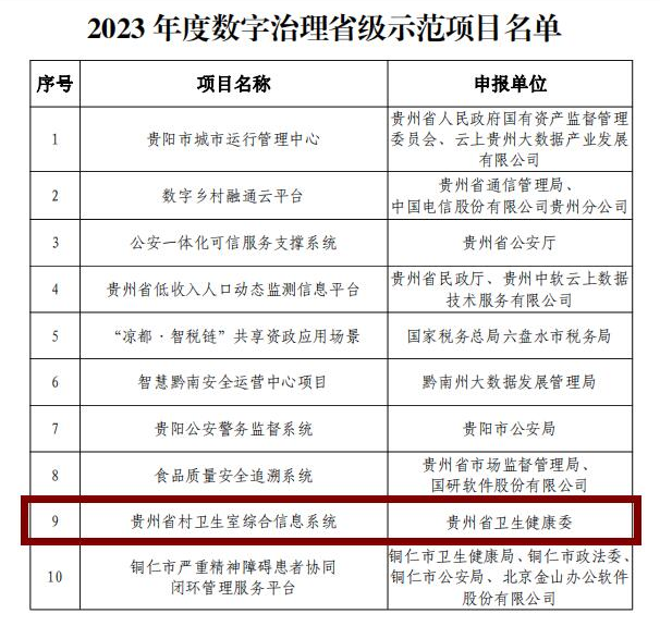 由晶奇網絡承建的貴州省村衛生室綜合信息系統和新(xin)生兒“一(yi)站式”服務系統(tong)分別(bie)獲得了(le)“省級數字治(zhi)理示范項(xiang)目(mu)”和(he)“省級數字民生示范項(xiang)目(mu)”稱號,榜上有名!