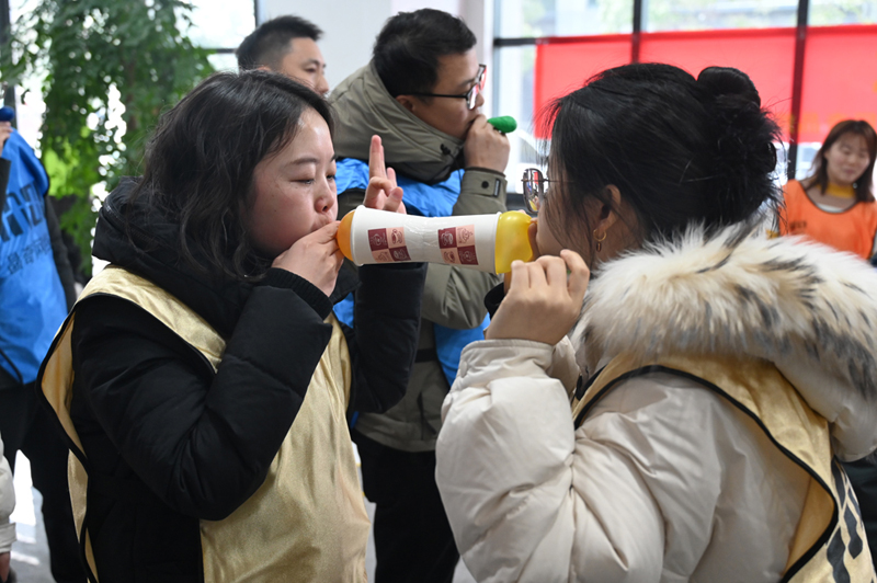 “氣球(qiu)紙杯(bei)”游戲(xi)極大地體現(xian)團結協作能力(li),隊(dui)員們以氣球(qiu)和(he)紙杯(bei)為(wei)道具進(jin)行(xing)傳(chuan)遞接力(li)賽(sai),不僅考驗參(can)賽(sai)人(ren)員的(de)肺活量和(he)把(ba)控技巧,同時也要(yao)根據現(xian)場的(de)突發情況(kuang)迅速做(zuo)出反應。隨著氣球(qiu)來回(hui)傳(chuan)遞至終點,隊(dui)員們通過全情的(de)投(tou)入(ru)釋放壓力(li),充分感受到團隊(dui)運動的(de)魅力(li)。